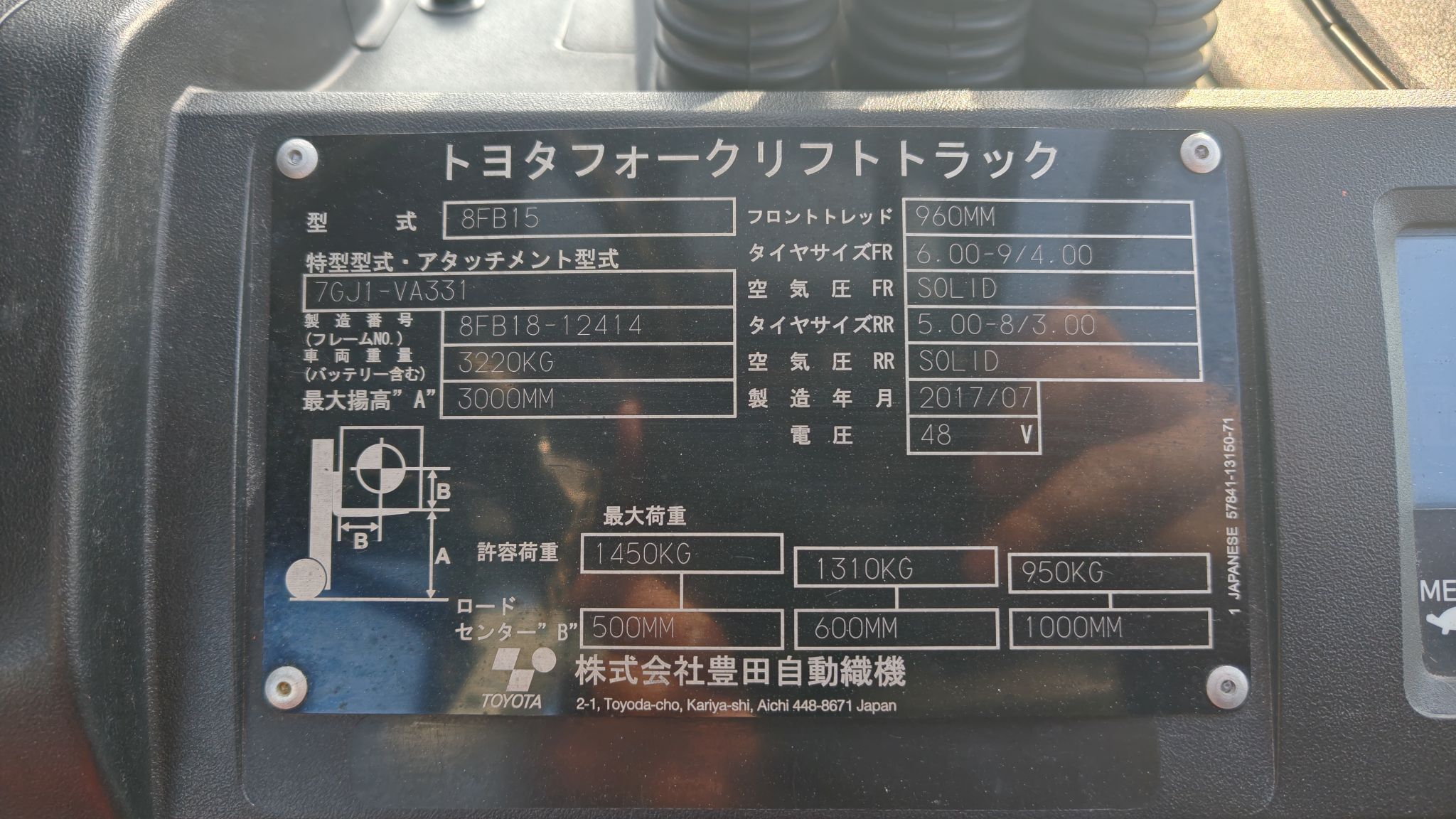 | 最大荷重 | 1450kg |